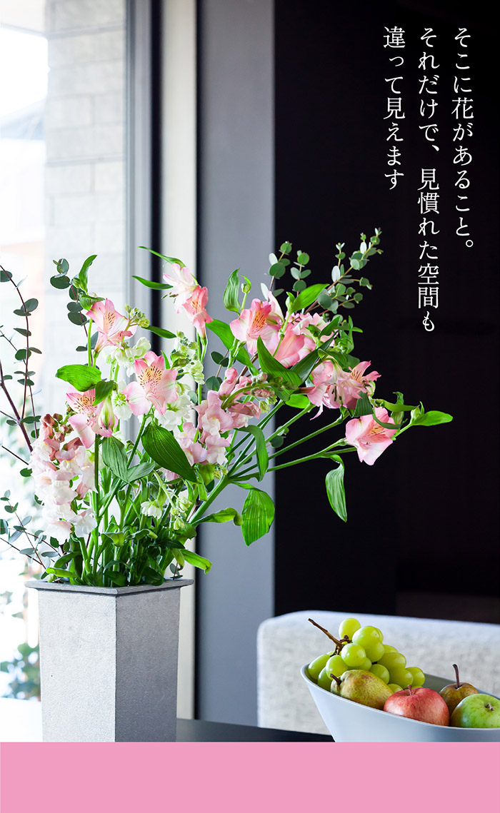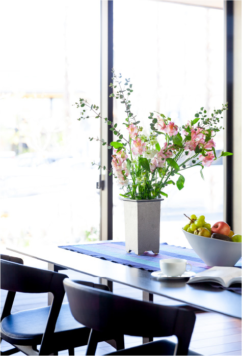 たとえば、家族が日々集う食卓。花を飾れば、家族団らんの時(shí)間もぐんと華やいだムードに包まれます。花をきっかけに、いつも以上に會(huì)話(huà)が弾むかもしれません。