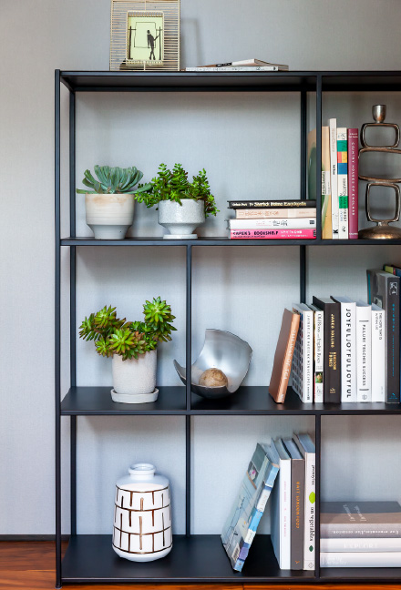ここでは花の代わりに多肉植物を用いてみました。お?dú)荬巳毪辘伪兢纫痪wにオブジェのように飾って、見(jiàn)せる本棚を楽しんでみましょう。