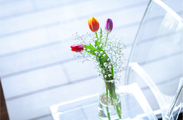 飾られた花を何気なく目にすることで、気持ちがすっとほぐれるもの。忙しい日々だからこそ、小さな美しい存在を身近に置いておきましょう。