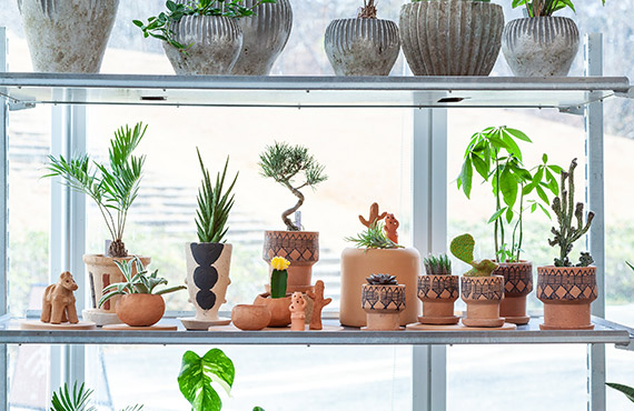 個(gè)性的な表情の多肉植物ならオブジェのような佇まい。いつもの収納スペースが魅力的なディスプレイ空間に変身。