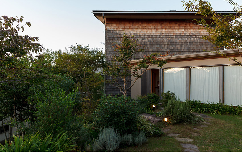 ISHITAYA本店gamadan。手前の建物內にダイニングがあり、ランチは一般の利用も可能。奧の建物の1階では企畫展なども開催。2階に體験型ショールーム、地下に試泊ができるゲストルームがある。