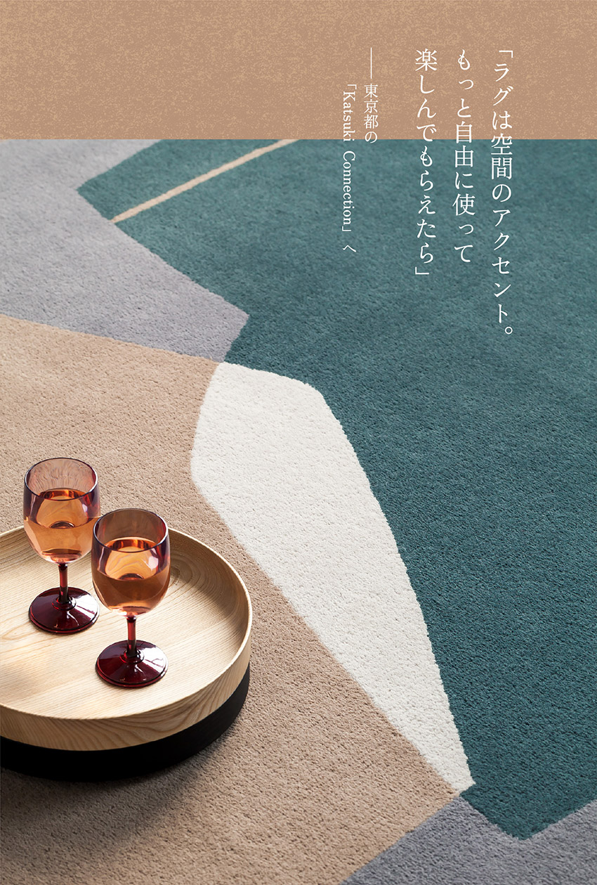 ラグは室內の印象を左右する、インテリアの大切な要素の一つ。「使い方に正解はないんです。もっと自由に楽しんで」と言うのはテキスタイルデザイナー?香月裕子さん。カツキコネクションの代表であり、すべてのデザインを手掛けています。