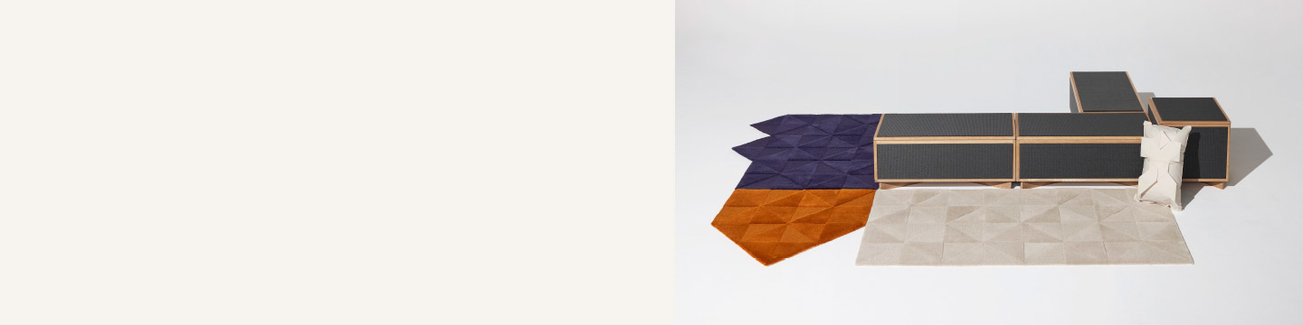 「ラグは自由に配置を変えられるし、三次元ラグはブロックのおもちゃのように置き変えて楽しめます。なかには毎年、1枚ずつ買い足しながら楽しまれている方もいらっしゃいますね」。以下に続く寫真はコレクションのラグにインスピレーションを受けて、自由にコーディネートしてみました。