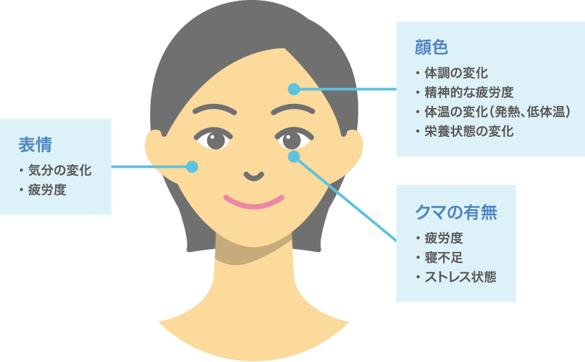 家族や、職場の同僚や、友人から、「なんか顔色悪いけど大丈夫?」とか、「無理してない?」など、心配して聲をかけてもらった経験はありませんか?そんな時、聲をかけてくれた人は、普段のあなたの狀態をよく見て覚えていてくれて、その日のあなたに普段と違う點を見つけ、「あれ?いつもと違うけど體調でも悪いのかしら?」と心配をして聲をかけてくれるのです。とてもありがたくて嬉しいことですね。しかも自分では見えないので、気づいていないケースもあったりします。