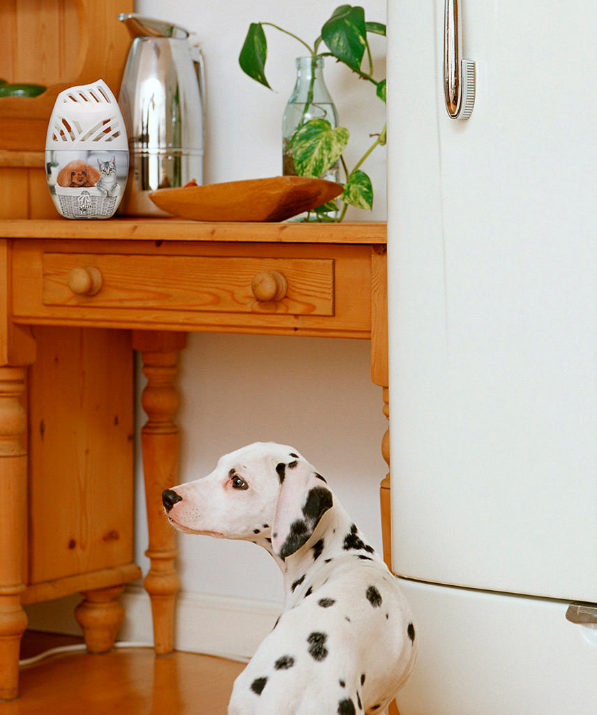 - 船橋さん:犬や貓の尿のニオイは人間のものとはまた違う成分で、人が不快に感じるニオイなんです。また、食する餌によっても排泄臭は非常に左右されます。一度でシートや貓砂を交換するのは現実的でないにしても、早めに交換することはニオイ軽減に有効です。ニオイをゼロにするのは難しいので、ペット専用の消臭芳香剤などで対策をするのをおすすめしています。「玄関?リビング用 消臭力 ペット用 フルーティーガーデン」は、フローラルにアップルやピーチを調和させた香りで、ペットの気になるニオイをしっかり消臭します。