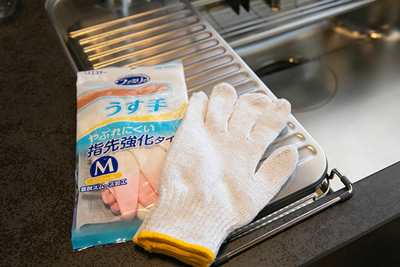 ゴム手袋の上から軍手を裝著した「軍手ぞうきん」なら、ぞうきんが入りにくい隙間や細(xì)かい箇所も指先の感覚でお掃除できます。ゴム手袋は、指先の感覚が分かるビニール製の薄手タイプだと作業(yè)しやすいです。