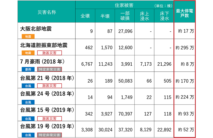 - ※2內閣府(防災擔當)災害情報および各電力會社報告資料より集計