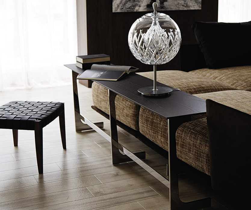 前述の多目的に使えるソファに、小さなテーブルを組み合わせるスタイルも人気です。各メーカーがソファとの組み合わせを提案しています。コンソールテーブル(奧行きが淺く細長いタイプ)、サイドデスクなど名稱はさまざまですが、共通しているのはソファにぴったりのサイズ感。テレワーク用デスクや子どもの勉強機としても使えますし、ちょっと飲み物を置きたい時にも便利です。