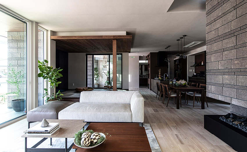 家族が各自の部屋で過ごすのではなく、リビングでそれぞれがしたいことをする、「家族がリビングでつながるコミュニケーション」が重要視されています。そのため、リビングでの過ごし方が多様化し、多目的に使えるソファが人気です。寫真のように座面が広く、組み合わせが自由にできるソファなら、好きな方向に腰掛けることができます。