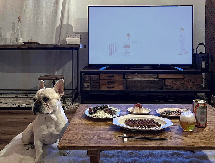 @su_a_sa_さん:「リビングのローテーブルで晩酌をしていた時期もありましたが、クルン(愛犬)がテーブルに手を伸ばしたり、じっと見つめてきたりすることも。落ち著いてお酒が飲める場所を求めて、キッチン飲みに移行してきた部分もあります」
