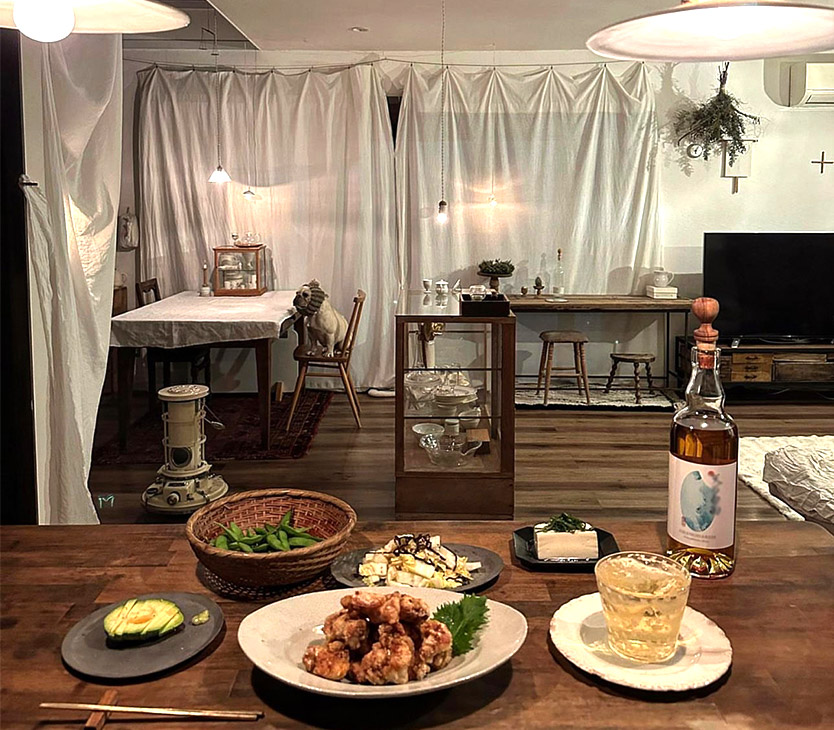 @su_a_sa_さん:「料理が出來上がった頃に夫が帰宅することが多いですが、夫はお酒をほとんど飲まないのでキッチンカウンターで向かい合って夕食を食べ、私はキッチンの中で引き続きお酒を楽しみながら、カウンター越しにおしゃべりをするのが夫婦のいつもの過ごし方です」