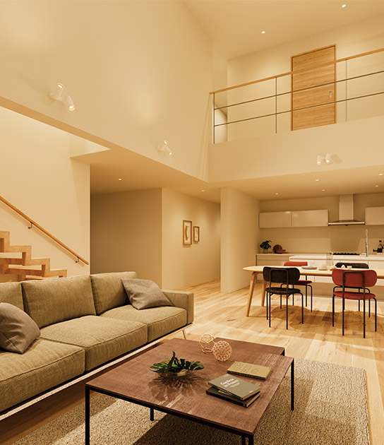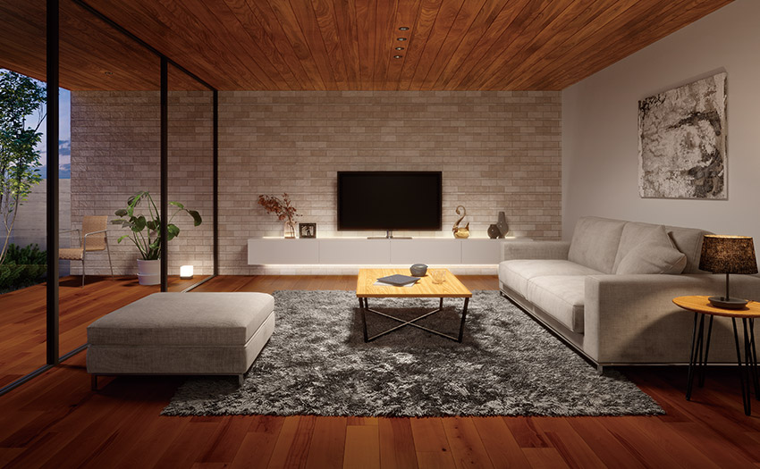 家族とのだんらんの場(chǎng)や、テレワークの合間に休息する場(chǎng)など、リビングにはさまざまな役割があります。ご自身の好みに合わせて色を選びましょう。また、壁や天井など內(nèi)裝色との調(diào)和も大切。例えば、壁面が風(fēng)合いの豊かな木目調(diào)ならば、素材感を存分に引き立てる電球色の間接照明がおすすめです。晝白色ならば爽やかに、電球色ならば落ち著いた雰囲気で。調(diào)光調(diào)色が可能なら自然光と融和させて、室內(nèi)にいても1日の変化を感じられます。