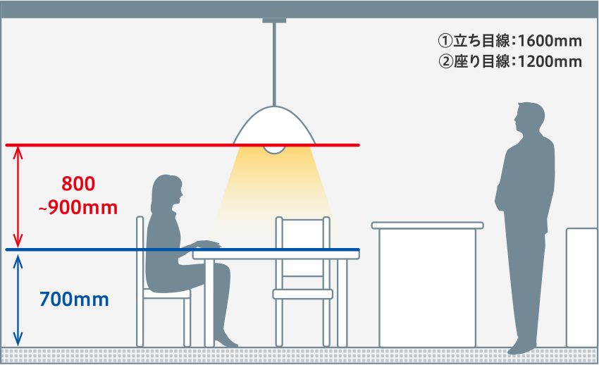 小ぶりのペンダントライト設置の高さと、人の目線の関係 概念図