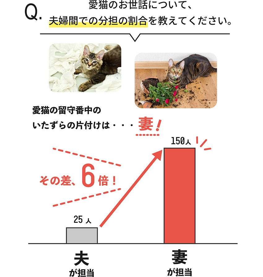 さらに、愛貓がしたいたずらの片付けは、圧倒的に妻が擔當しているという事実も!