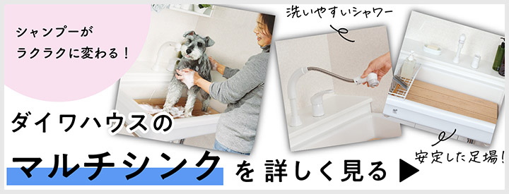 愛犬がシャンプーを嫌がる場合、水や音への恐怖心と長時間の拘束がストレスになっている可能性があります。そこで手早く済ませるために、小型犬の場合は洗面臺で行うのもおすすめです。飼い主さんの目線の高さになることで作業がしやすく、必要なグッズを近くに用意しておきやすいので、短時間でシャンプーを済ませることができます。