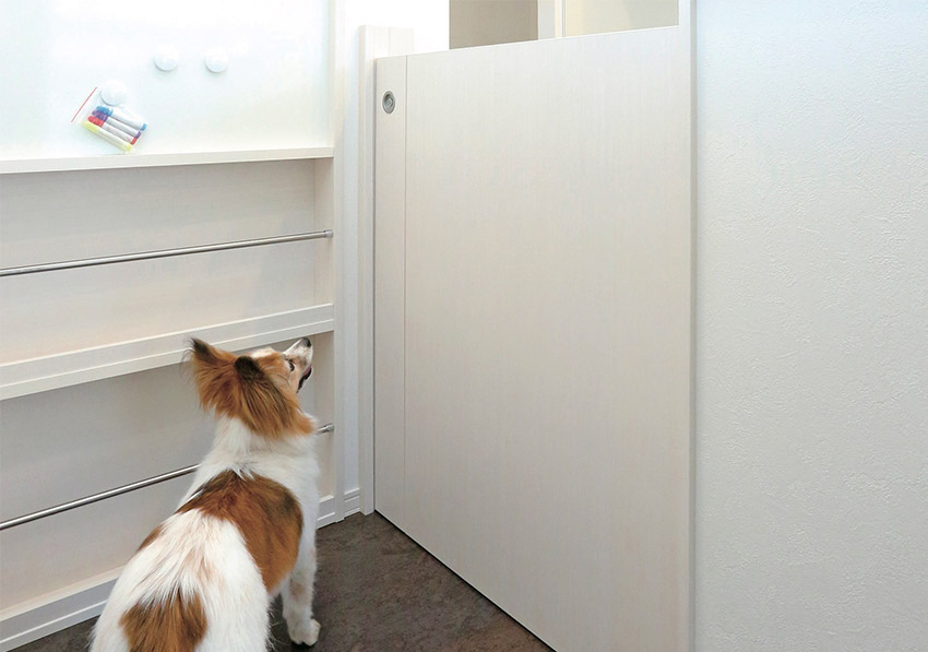 愛犬の居場所となる場所の出入り口に設(shè)置。扉を閉めて出入りを制限できます。