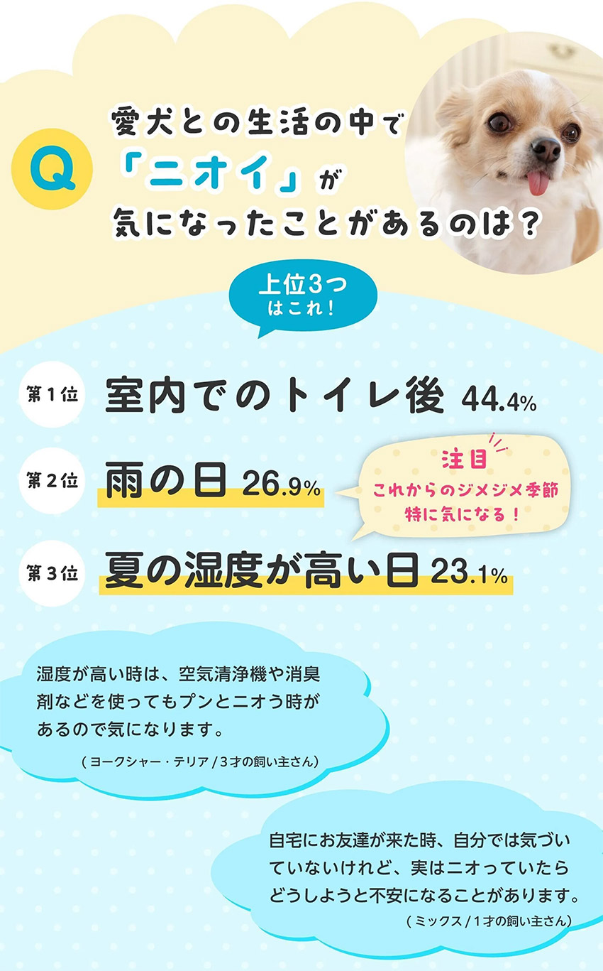 - 【vol.12】夏、犬の飼い主さんが気になるニオイ1位は!?今すぐ取り組みたいニオイ対策をプロが伝授
