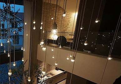Tさま邸では、和室にRを取り入れ、さらに球體の照明を採用することで、和と洋が溶け込む空間を?qū)g現(xiàn)しました。