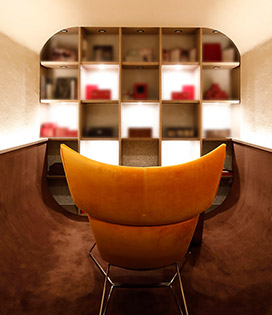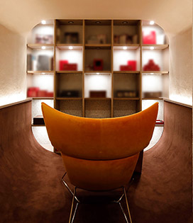 趣味で集めてきた時計を楽しむコレクションルームは、オーナーのKさま(夫)だけが出入りする隠れ家のような空間。大切な時計を眺めたり手に取ったりしやすいよう、あえて空間をコンパクトにまとめ、大膽にも大きな半徑のRを天井と床に採用しています。さらに時計を照らし出す照明を調(diào)整すればほの暗く、まさに洞窟のような空間を?qū)g現(xiàn)しています。