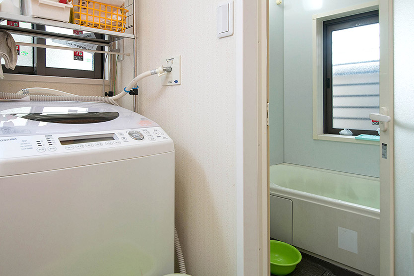 お風呂場のすぐ橫に洗濯機