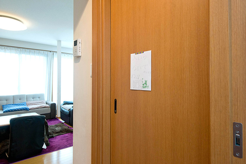 「この部屋は、キッチンからお風呂場への動線上にあるので、家事をしながらも目が行き屆くんです。」