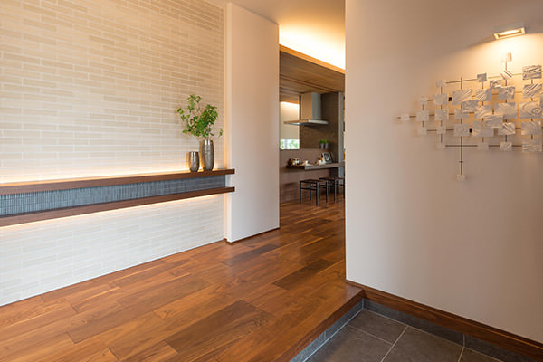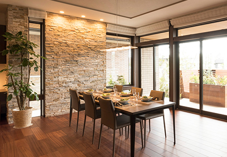 タイルやパネルの材質(zhì)は、陶磁器質(zhì)や磁器質(zhì)、木質(zhì)、コンクリートなど。本物の石や木などの自然素材を使ったものは風(fēng)合いがよく、素材の手觸りも楽しめて、高級感を演出できます。クロスと比べると重量があり、モルタル下地や目地などの施工が必要なため、新築時(shí)に取り入れるのがおすすめです。