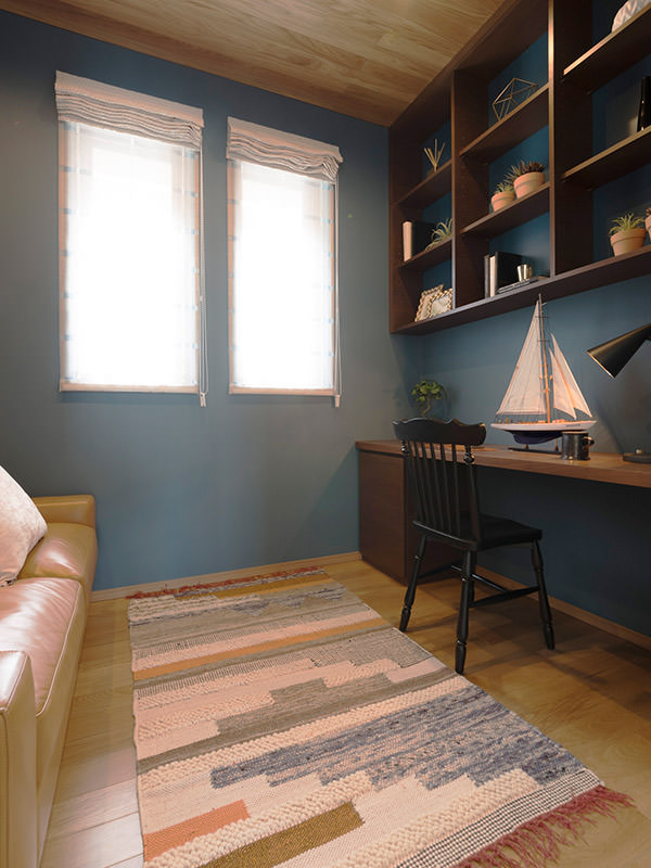 逆に、窓が多くて壁が少ない部屋のように、フォーカルポイントになる壁が必然的に決まる場合は、色の見え方を利用しましょう。例えば、西日の當(dāng)たる奧行きのない部屋なら、壁を後退色のブルーにすれば、涼しさと奧行き感を感じさせることができます。