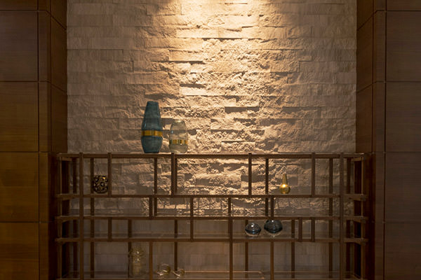 凹凸がある壁材は、照明と組み合わせることで陰影が生まれ、ドラマティックに演出できます。また、大膽なプリント柄の壁紙を貼れば、絵を飾らなくても壁がアートに変わります。