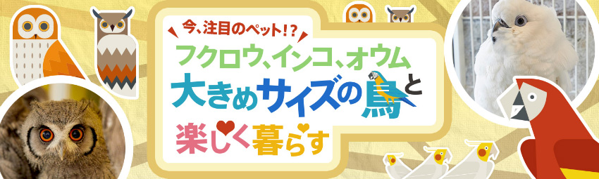 定番のインコやオウム以外にも、最近ではフクロウカフェブームの影響もあり、