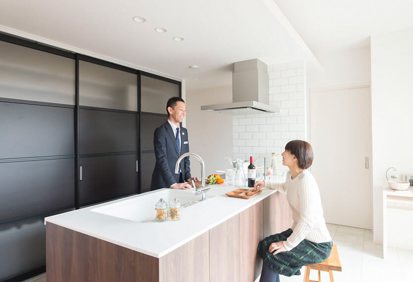 キッチンは広くて開放的です。一緒にご飯を作って、その場で食べながらおしゃべりなんてこともできそう