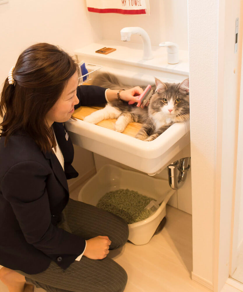 「洗面臺の下には貓のトイレも置けます」と山崎さん。確かにこの程よい狹さが貓を安心させてくれますね