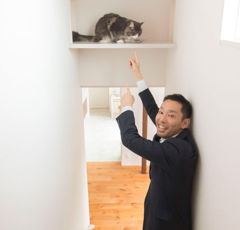 そう聞いて、貓のことを考え、貓好きの気持ちに寄り添った家づくりって、こういうことだな、と思ったのです。愛貓家は、貓が付けたキズさえも愛おしく思えるものだし、フローリングにワックスを塗るのも家への愛情ですから。