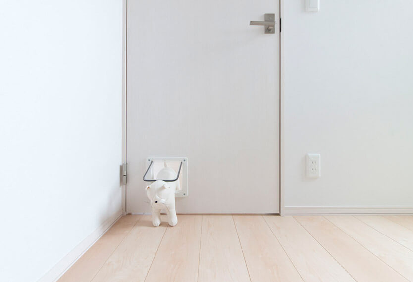ベットルームにも貓用のドアがついているので、貓が自由に出入りできます。また併設のウォークインクローゼットも広々で大満足!
