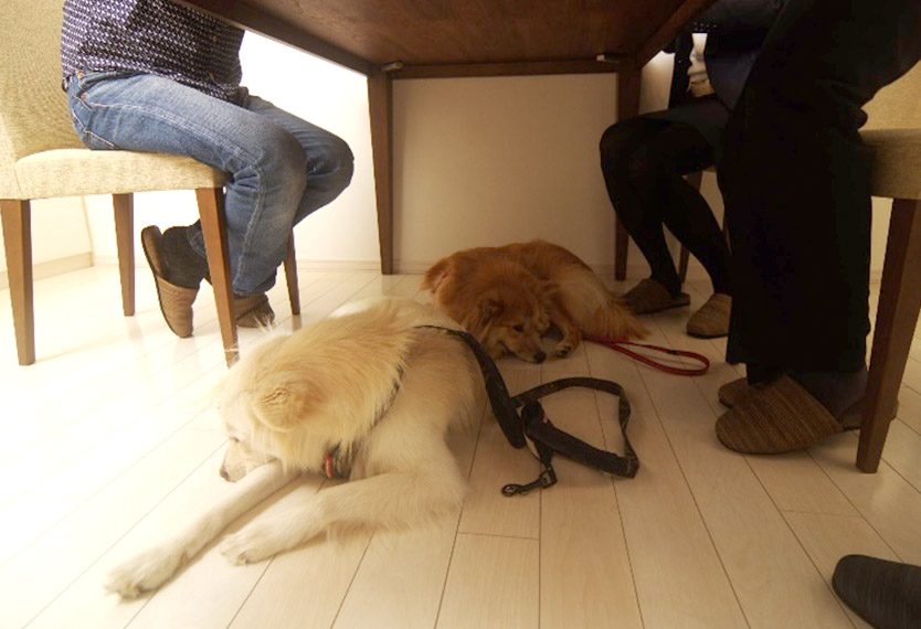 獣醫(yī)師さんの話で犬は暗くて落ち著いた空間を好むと聞いたため、犬が落ち著ける場所に少し穴ぐら感を演出。
