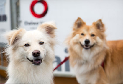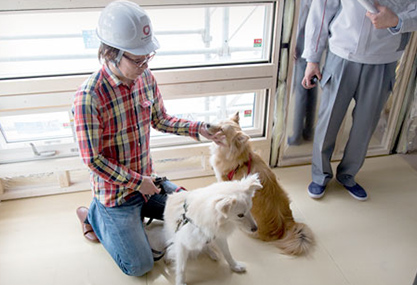 現(xiàn)場(chǎng)での階段上り下りは危ないので、犬を抱えて移動(dòng)する