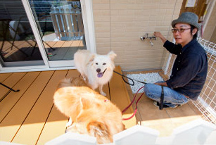 ゲート內はウッドデッキ(南向き)で、日向ぼっこをすることができる