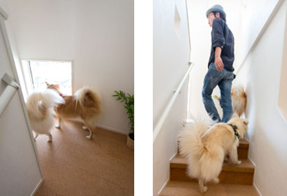 階段は、大吉と福助もまったく問題なく上り下りしていた。とくに老犬にはこういう階段のほうがいいだろう。もっといえば、人間もこれくらいの段差のほうが本來は楽なはず。