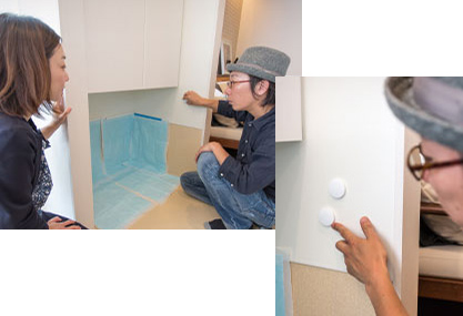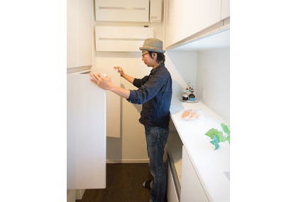 Team-xevoの間宮裕二さんと玄関収納のチェック中