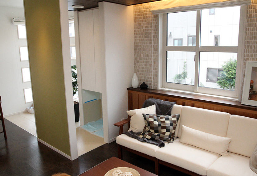 2階リビング脇の犬用トイレスペースも今回の工夫のひとつ 寫真はTeam-Xevoの內田眞里江さん