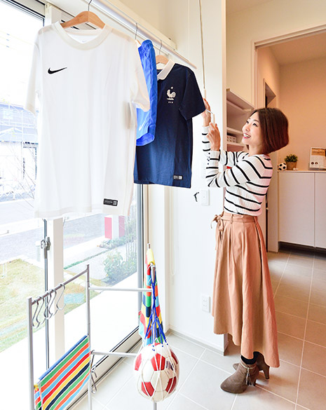 スポーツをする子どものことや、パパ?ママのことを本當に考えたつくりになっていて、驚きました。この家なら、子どもが泥汚れで帰ってきても大丈夫ですね。家族で家事がシェアしやすい作りにもなっているし、「こんな家に住みたい!」って、つくづく思いました。