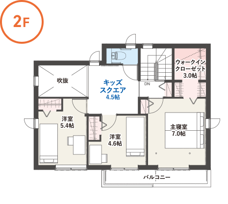 今回見學した「アクティブ土間のある家」は、延床面積112.23m2(約33.94坪)の2階建て。1階にはテラスから続くアクティブ土間、17.7帖のLDKなどを設置、2階にはキッズスクエア、主寢室、2つの洋室といった間取りになっています。