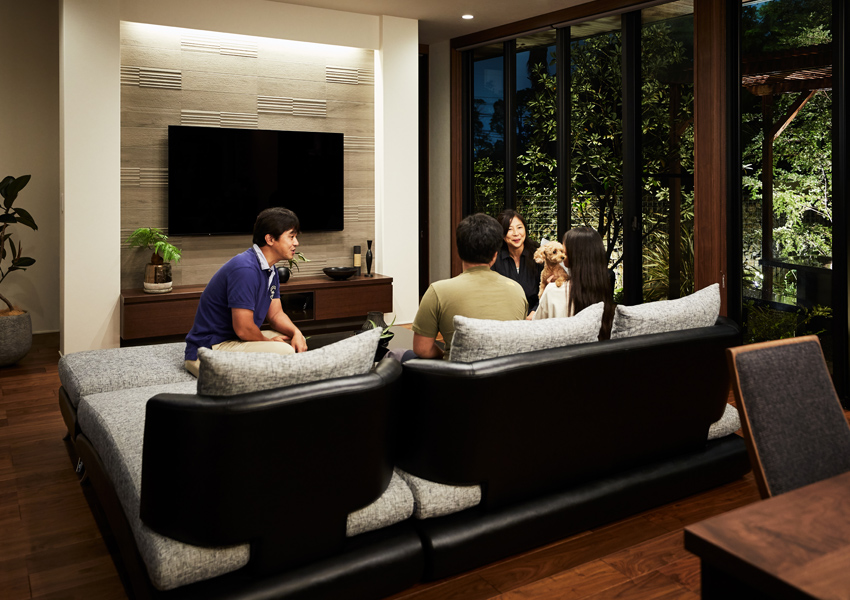 Tさまご家族が勢(shì)ぞろいするのは夕食の時(shí)間。食事のあとはリビングのソファに集まり、休日のプランや學(xué)校のことで話が弾むそうです。「毎年両親の家で開催していたクリスマスパーティーを、“今年からこの家でしよう” と母に言われました。設(shè)計(jì)士さんと共に最後まで妥協(xié)せず、理想の家をつくることができてよかったです」と語るTさまご夫妻の未來には、家族やゲストの多くの笑顔があふれています。