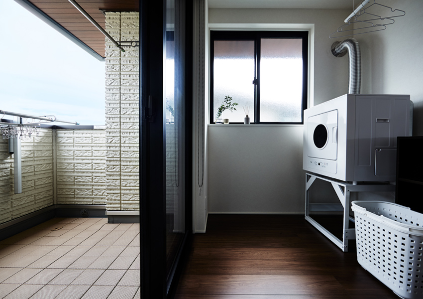 「洗濯が大好き」という妻の敬子さんの理想を形にした機(jī)能的なランドリールームは2階南側(cè)の日當(dāng)たりの良い場(chǎng)所に。ガス乾燥機(jī)やアイロン臺(tái)をそろえた機(jī)能的なレイアウトで家事をサポートしています。