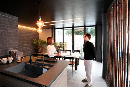 1階のリビングが、スタイリッシュながら和の雰囲気もプラスされていて、とにかく素敵でした。どの部屋も陽射しがたっぷり入り、「森」のテイストが感じられました。