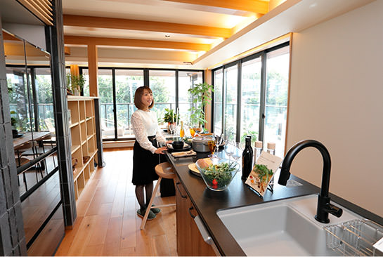 都市にいながらも、自然を感じる。歳を重ねても、穏やかに暮らせる。まるで森に包まれるような、潤いと彩りある木の住まいが誕生。