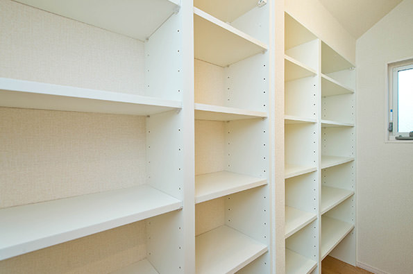 キッチン奧のデッドスペースはパントリーに。女性でも手の屆く高さが嬉しい。