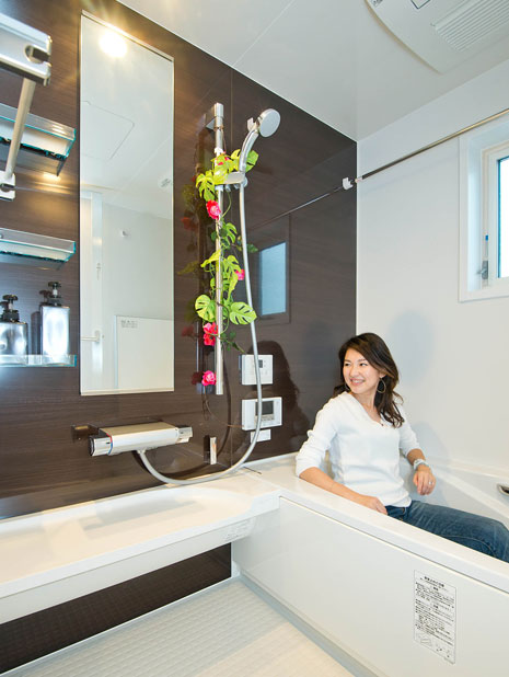 洗面臺(tái)まわりもゆったり。浴室は半身浴ができるタイプ。