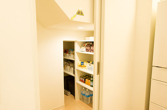 パントリーに設置した棚板は可動できるので使い勝手も良好。