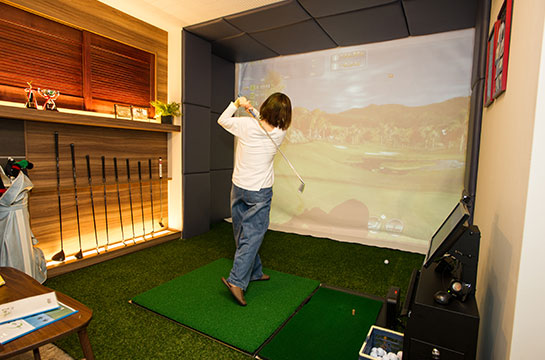 3階の一部屋は、この防音室にゴルフシミュレーターを取り付け、ゴルフの練習スペースに。