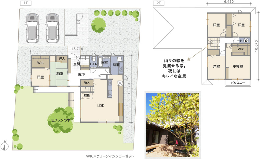 二世帯住宅では、暮らしを分斷するような作りにするものが多くありますが、Tさま邸は違いました。建物をL字にし、モクレンの樹を囲むように各部屋を配置することで、二世帯の家族の暮らしを分斷しないようにしています。ほどよい距離感を保ちながら、樹を介していつでもお互いの存在を感じられるような家になっているのです。